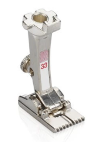 Pintuck Foot with 9 Grooves #33 is especially suited to sewing pintucks with a double needle on very delicate fabrics.