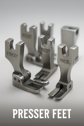 Presser Feet: Including walking feet, roller feet, and cording feet.