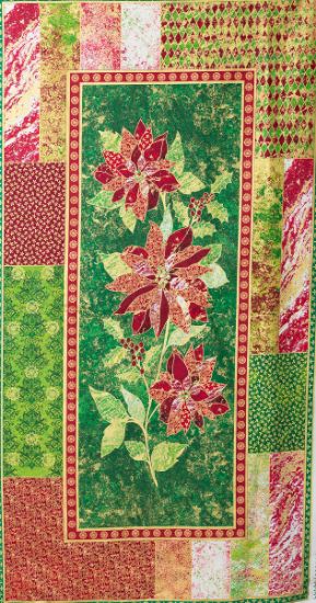 - Marblehead Glistening Metallics - Poinsettia Fabric Panel 100% Cotton
